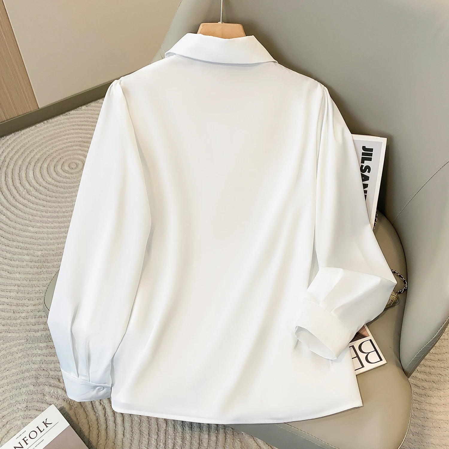 Chemise femme grande taille – blouse blanche élégante col V, tenue professionnelle chic pour bureau & sorties