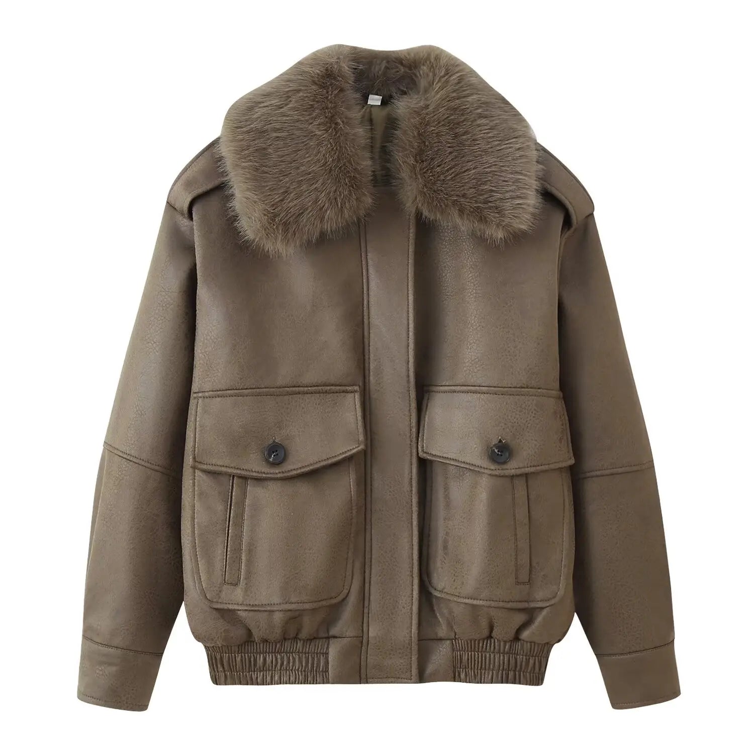 Veste femme imitation daim – veste chaude col en fausse fourrure, coupe zippée à revers, veste hiver élégante avec poches
